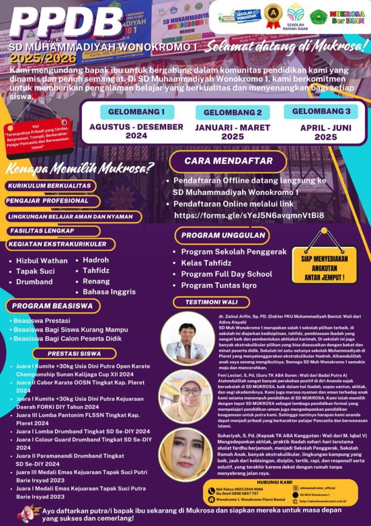 SD Muhammadiyah Wonokromo 1 berada di bawah naungan Pimpinan Ranting Muhammadiyah (PRM) Wonokromo, Pimpinan Cabang Muhammadiyah (PCM) Pleret dan Pimpinan Daerah Muhammadiyah (PDM) Bantul.